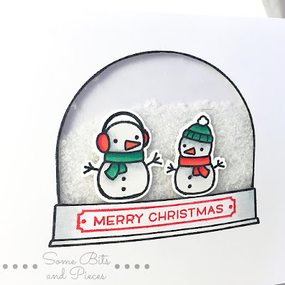 To finish of the card, I adhered the front panel to the background piece and glued the two snowmen on top of the acetate. I didn't want them to be inside of the shaker since I used a lot of snow and you wouldn't have been able to see them otherwise.